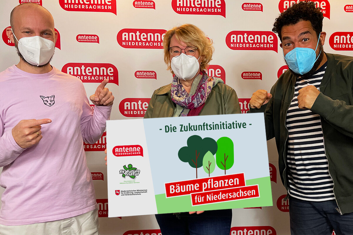 Mit der Gemeinschaftsaktion „Bäume pflanzen für Niedersachsen“ macht sich Antenne Niedersachsen zusammen mit der Initiative fit4future natur und dem Niedersächsischen Landwirtschaftsministerium für die Wiederbewaldung des Landes und eine bessere Zukunft für alle stark. Jede und jeder kann sich an dem Projekt beteiligen.
